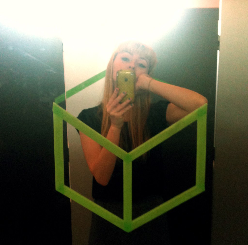 I installed a series of site specific tape installations using reflective surfaces in the building where the event would be held. I also exhibited painting and small wire sculptures.